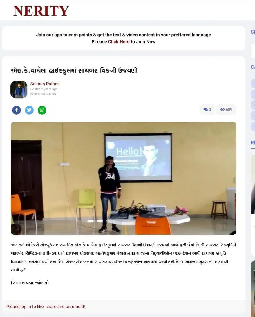 Director & CEODhruvesh Panchal, founder of Selkey Cyber Security Pvt Ltd, promotes cyber awareness and digital safety through seminars and scam prevention initiatives.